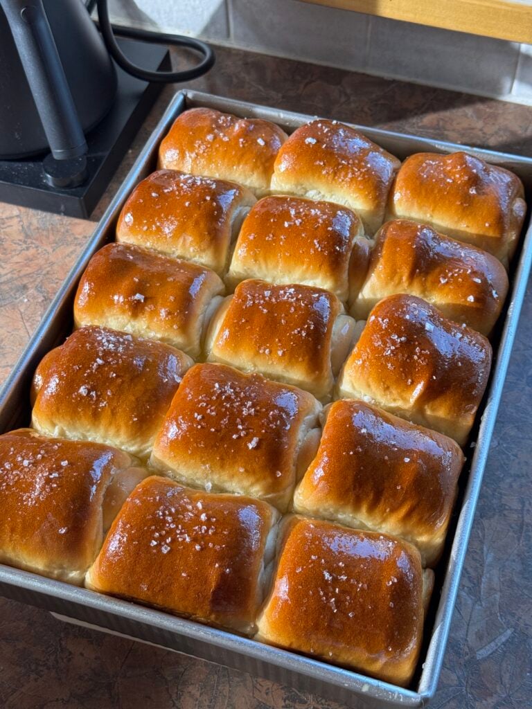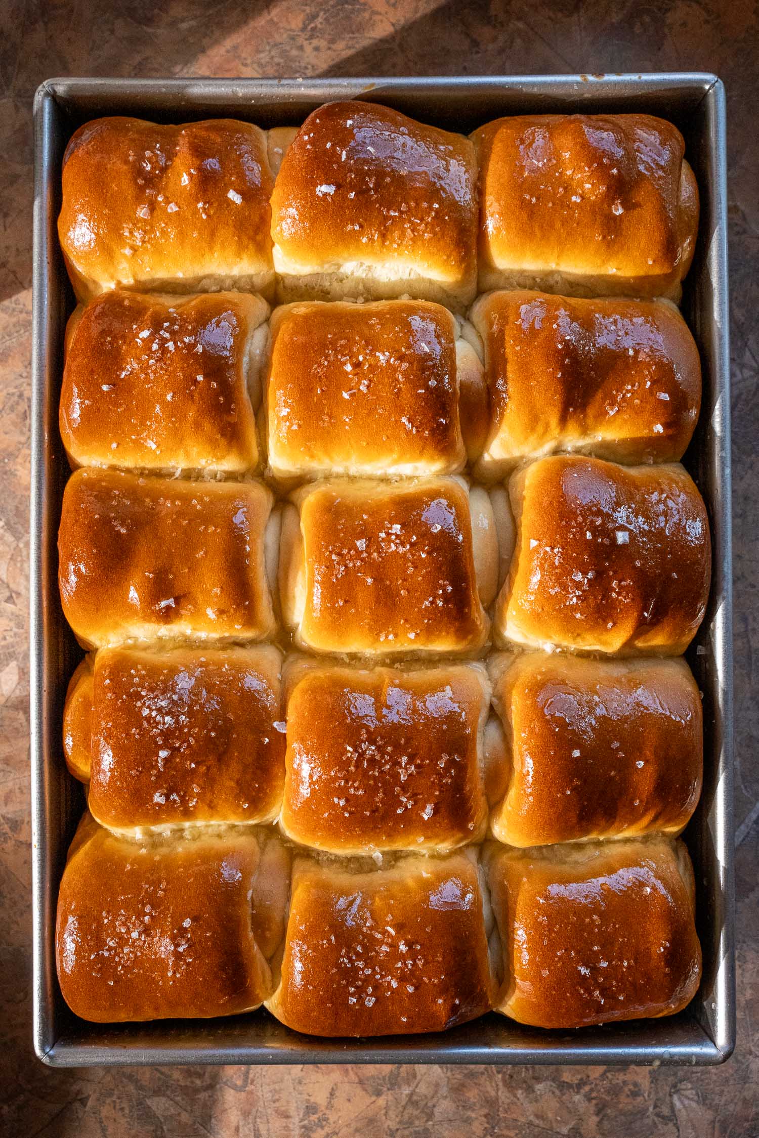 Man, these were such a hit at Thanksgiving! At first I was worried because my dough was kind of thick, but I just let them proof nice and long the second time and they turned out perfect. So fluffy with a slight sweetness. Perfect!