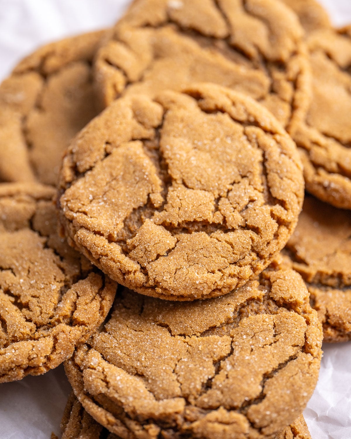 These are the perfect cookies for the holiday season! First of all, the balance of ginger and cinnamon paired with the soft, chewy texture is about as good as it gets. You can even dial up the amount of ginger if you like them a little spicy.