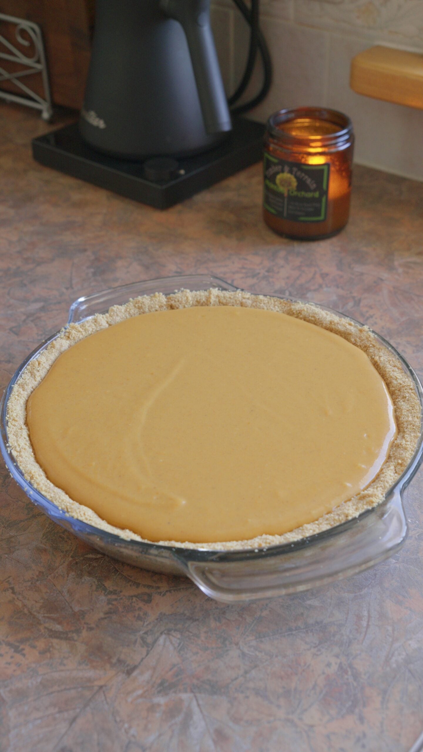 - Transfer to pie crust: Pour the mixture into the crust and use your spatula to level off the top.