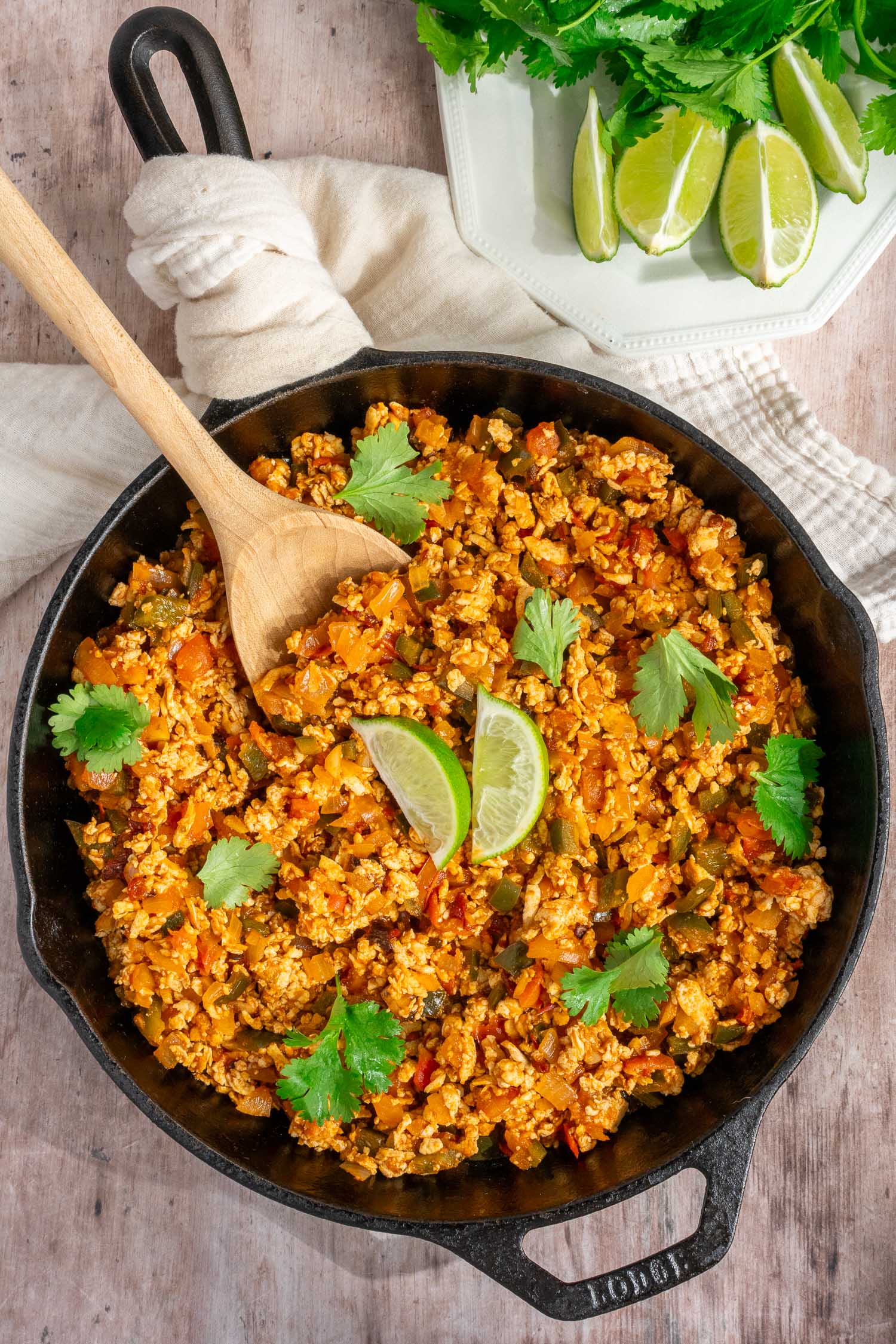 - Adjust flavors: The sofritas are ready when the extra liquid has reduced. Taste and adjust salt and spice to your preference. Garnish with fresh cilantro and a squeeze of lime juice. Serve in tacos, burritos, burrito bowls and more!